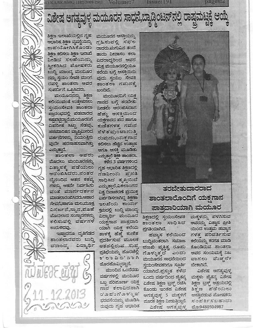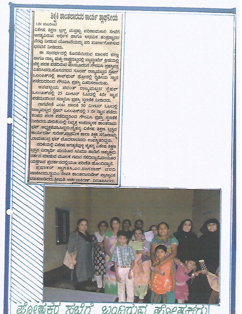 Children of the Chaithanya school won gold, silver and bronze medals at the district level Olympics for special children held in Shimoga in 2012. Read more..